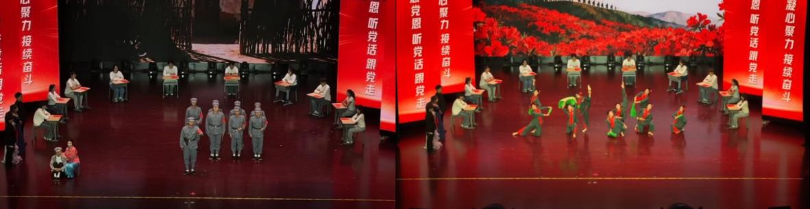 决赛现场,我院青年团员以“音乐+红色文化”为主线,将经典红色歌曲、革命故事与青年使命有机融合。活动设计中,既有《青春中国》朗诵、《映山红》舞蹈等作品的深情演绎,也有《映山红》歌剧片段,用旋律和语言再现了革命先辈的坚定信念与家国情怀。