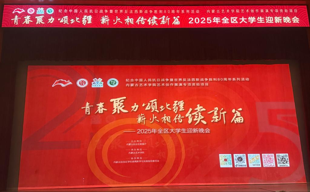 近日我校学生受邀参加全区大学生迎新晚会,活动由内蒙古自治区教育厅主办,内蒙古艺术学院承办,全区12所高校参与节目选送。这不仅是一场迎接新生的晚会,更是一次文化的传承、青春的绽放与梦想的启航。