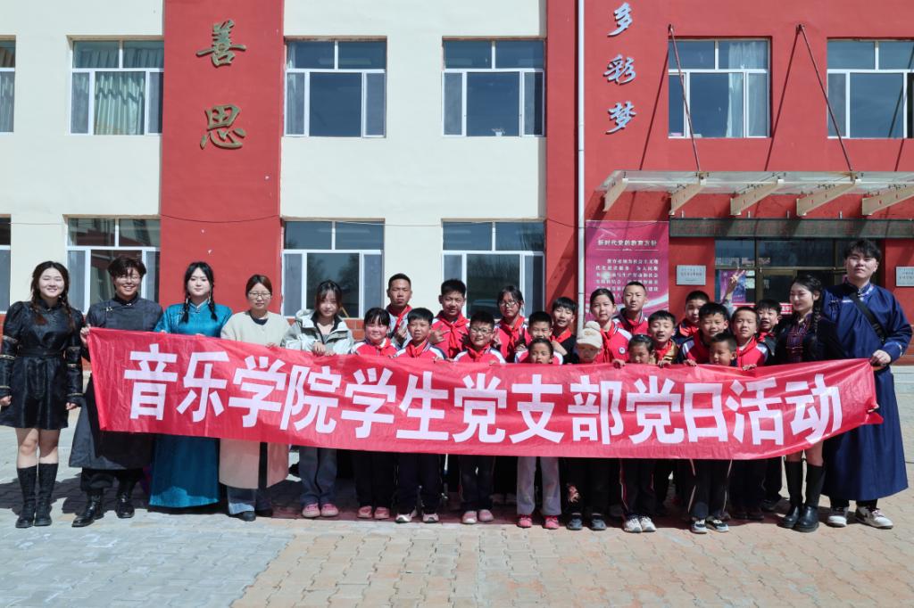 4月1日,音乐学院学生党支部、研究生党支部深入达茂旗乌克忽洞小学,开展主题党团日活动。学院党总支副书记石烨华,研究生党支部书记杨昊璇,学生党支部委员李素珍参加。