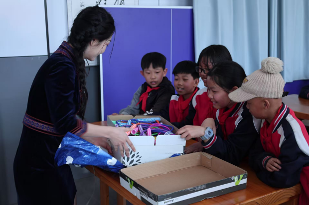 活动现场,学生党员与小学生亲切互动、同上一堂课,手把手教唱儿歌,带领孩子们近距离感受传统乐器的魅力,沉浸式体验中华优秀传统文化。同时,党团员志愿者还开展文具捐赠、趣味体育等暖心活动,以实际行动传递关爱与温暖。